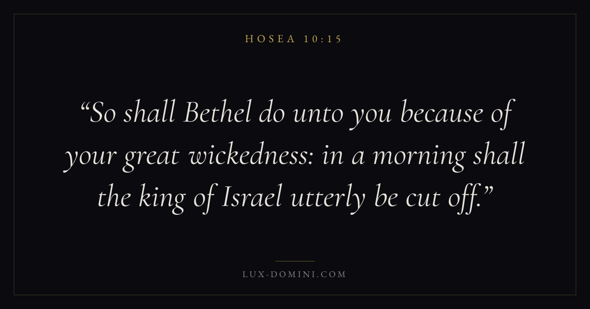 So shall Bethel do unto you because of your great wickedness: in a morning shall the king of Israel utterly be cut off.