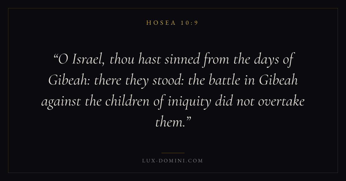 O Israel, thou hast sinned from the days of Gibeah: there they stood: the battle in Gibeah against the children of iniquity did not overtake them.