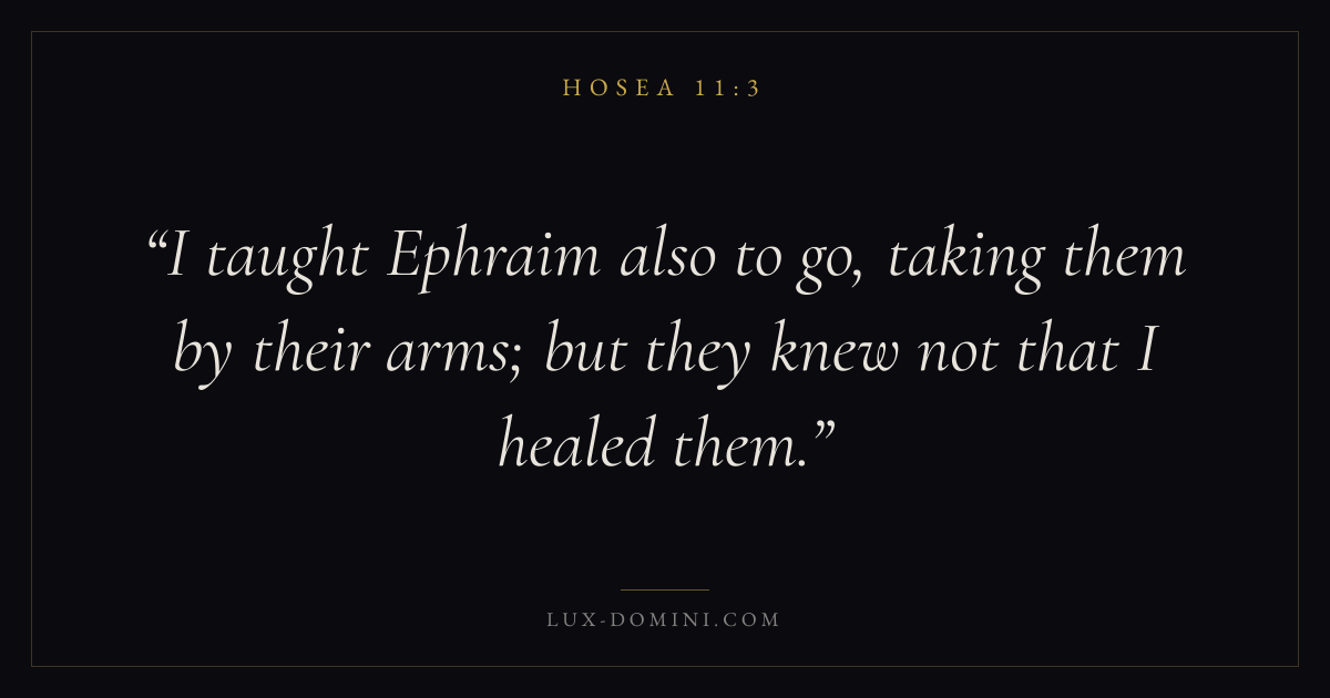 I taught Ephraim also to go, taking them by their arms; but they knew not that I healed them.