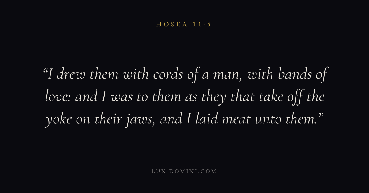 I drew them with cords of a man, with bands of love: and I was to them as they that take off the yoke on their jaws, and I laid meat unto them.