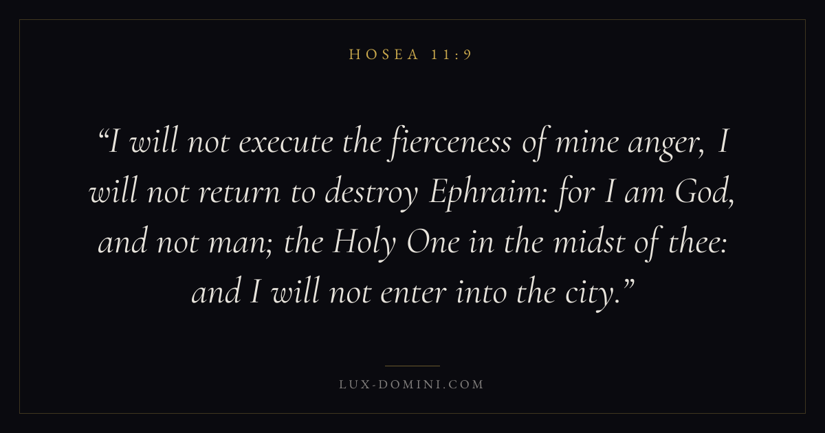 I will not execute the fierceness of mine anger, I will not return to destroy Ephraim: for I am God, and not man; the Holy One in the midst of thee: and I will not enter into the city.