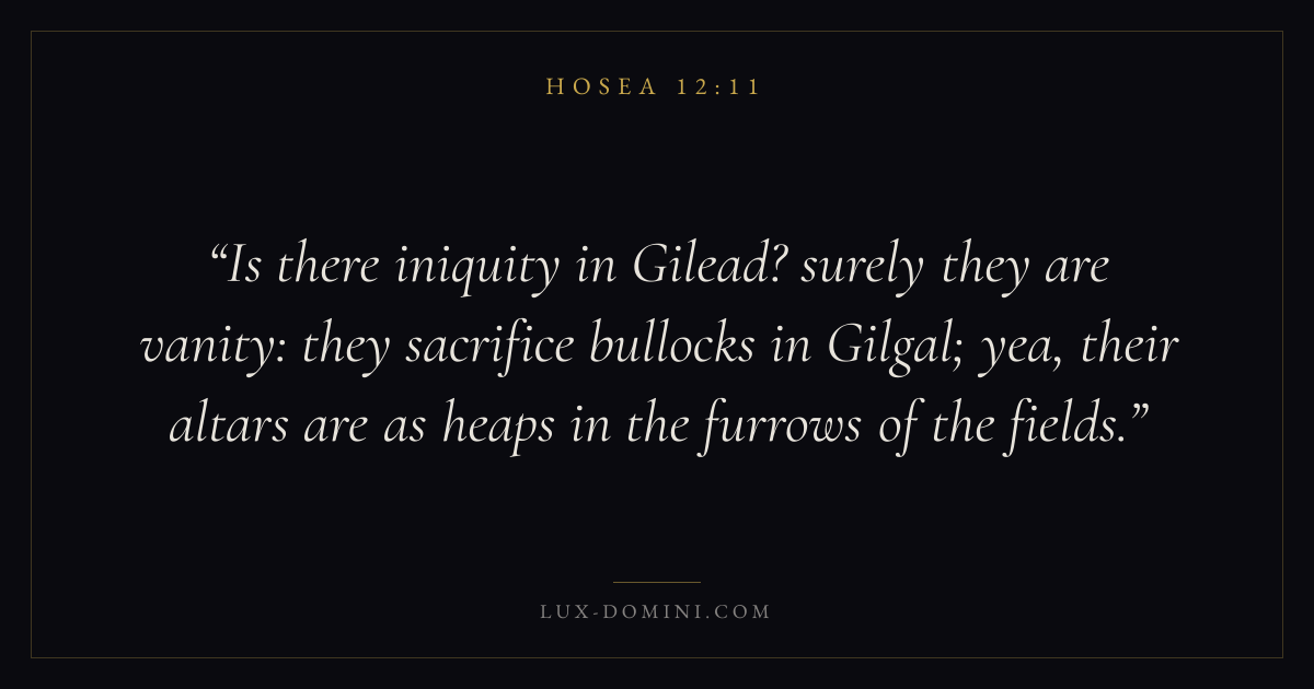 Is there iniquity in Gilead? surely they are vanity: they sacrifice bullocks in Gilgal; yea, their altars are as heaps in the furrows of the fields.