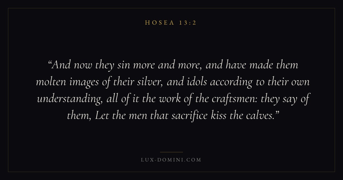 And now they sin more and more, and have made them molten images of their silver, and idols according to their own understanding, all of it the work of the craftsmen: they say of them, Let the men that sacrifice kiss the calves.