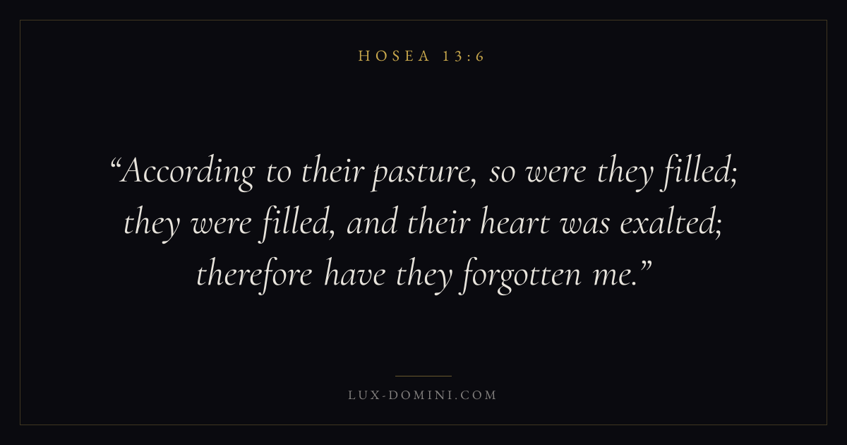 According to their pasture, so were they filled; they were filled, and their heart was exalted; therefore have they forgotten me.