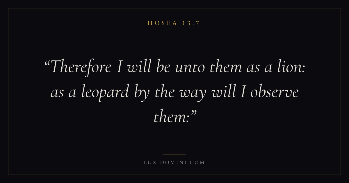 Therefore I will be unto them as a lion: as a leopard by the way will I observe them: