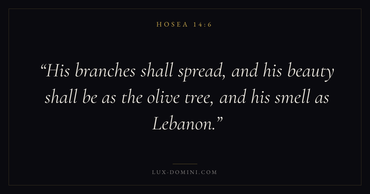 His branches shall spread, and his beauty shall be as the olive tree, and his smell as Lebanon.