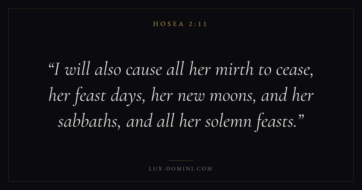 I will also cause all her mirth to cease, her feast days, her new moons, and her sabbaths, and all her solemn feasts.
