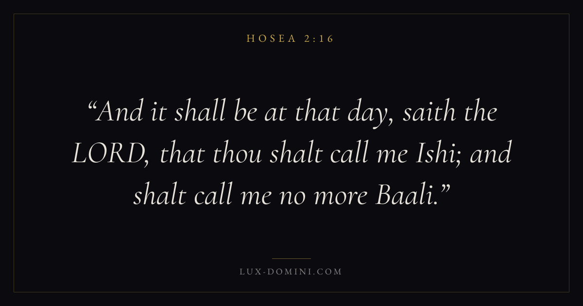 And it shall be at that day, saith the LORD, that thou shalt call me Ishi; and shalt call me no more Baali.