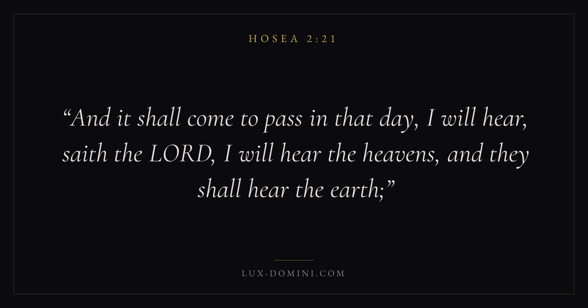 And it shall come to pass in that day, I will hear, saith the LORD, I will hear the heavens, and they shall hear the earth;