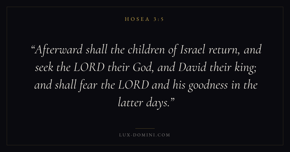 Afterward shall the children of Israel return, and seek the LORD their God, and David their king; and shall fear the LORD and his goodness in the latter days.