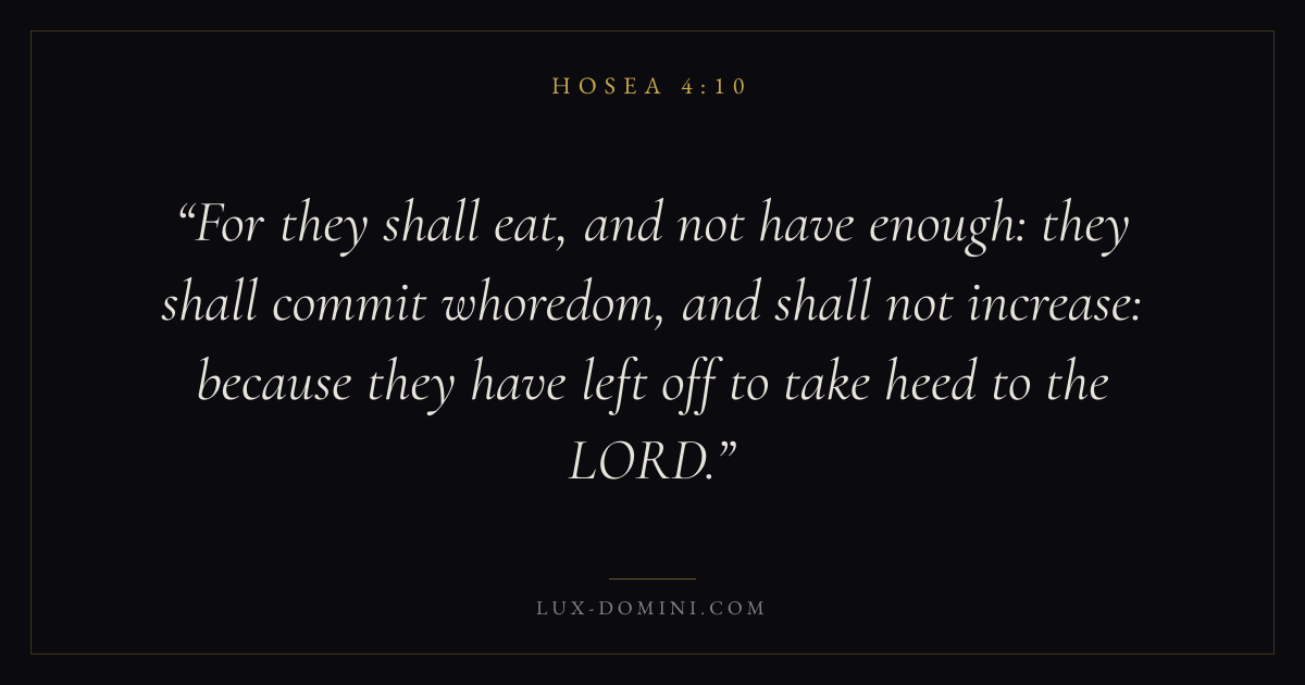 For they shall eat, and not have enough: they shall commit whoredom, and shall not increase: because they have left off to take heed to the LORD.