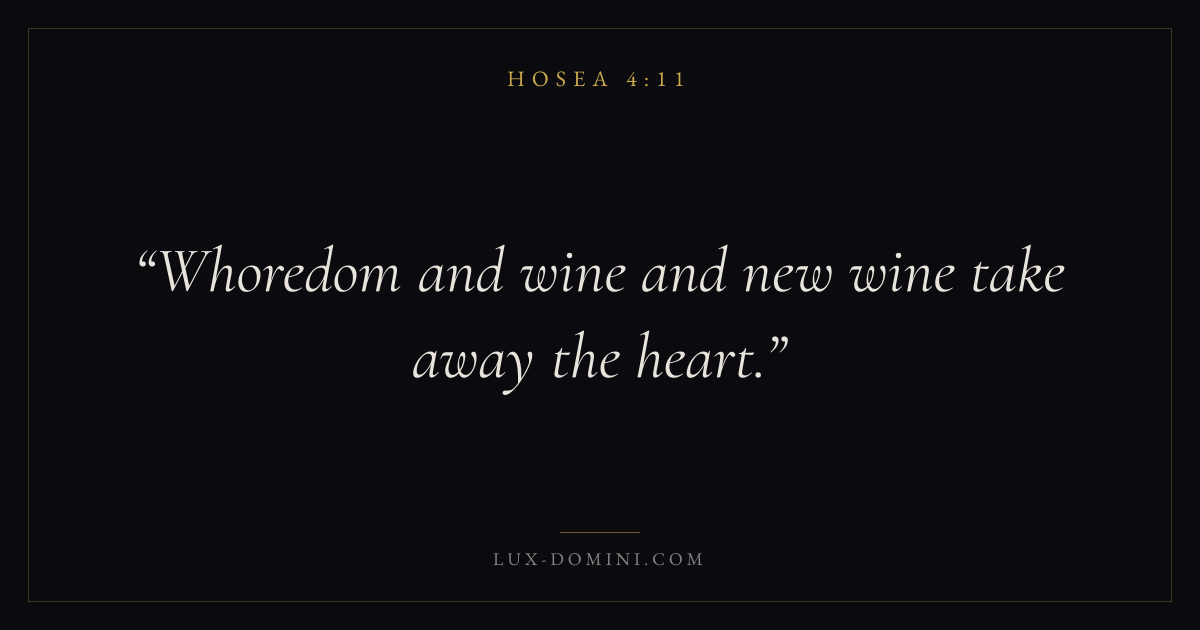 Books / Hosea / Chapter 4 / Verse 11 ← Hosea 4:10 Hosea 4:11 Hosea 4:12 → Whoredom and wine and new wine take away the heart. Download verse card Share on Twitter Share on Facebook Pin it ✦ Key themes LoveWisdomJustice and mercyCovenant love Read with Hosea 4:8Hosea 4:9John 3:161 Corinthians 13:4 Related topics Bible verses about loveBible verses about wisdomBible verses about justice and mercy ✦ Hosea Chapter 4 verses V. 1 V. 2 V. 3 V. 4 V. 5 V. 6 V. 7 V. 8 V. 9 V. 10 V. 11 V. 12 V. 13 V. 14 V. 15 V. 16 V. 17 V. 18 V. 19