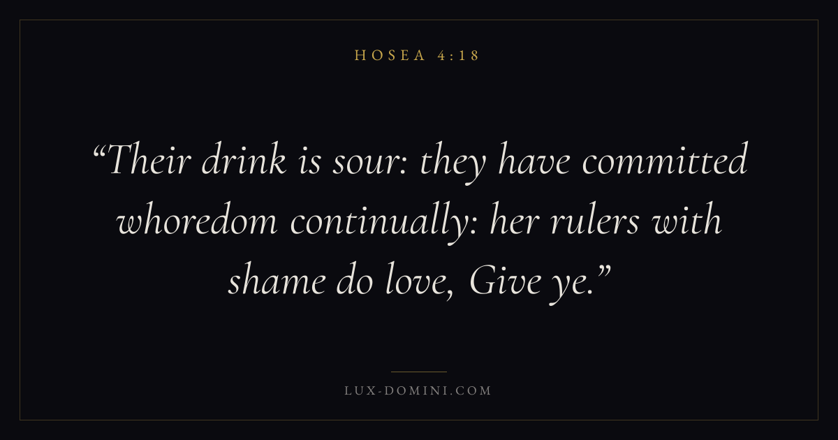 Their drink is sour: they have committed whoredom continually: her rulers with shame do love, Give ye.