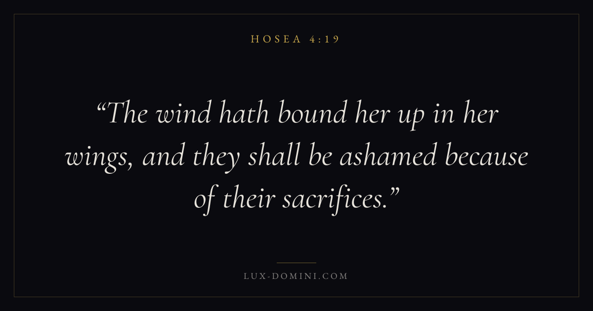 The wind hath bound her up in her wings, and they shall be ashamed because of their sacrifices.