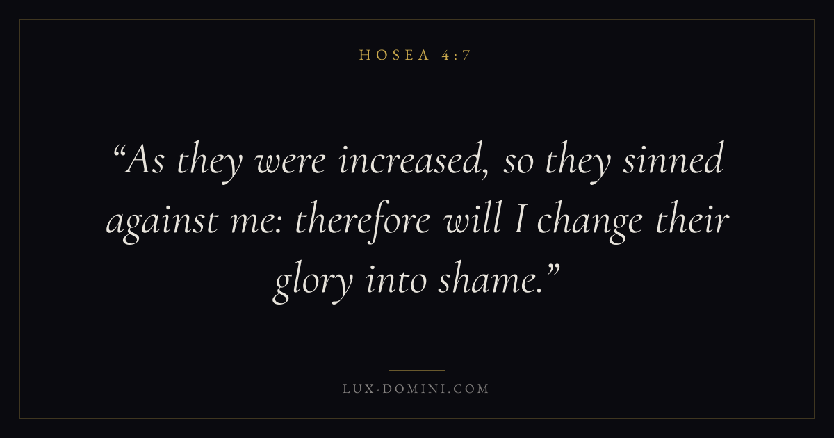 As they were increased, so they sinned against me: therefore will I change their glory into shame.