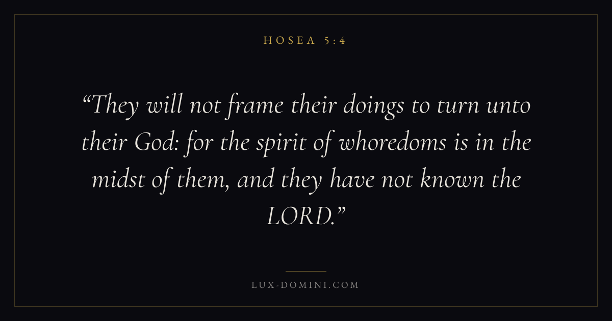 They will not frame their doings to turn unto their God: for the spirit of whoredoms is in the midst of them, and they have not known the LORD.