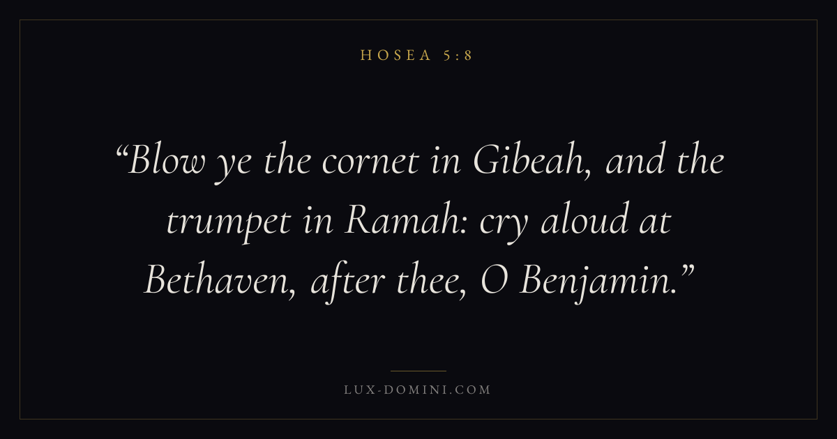 Blow ye the cornet in Gibeah, and the trumpet in Ramah: cry aloud at Bethaven, after thee, O Benjamin.