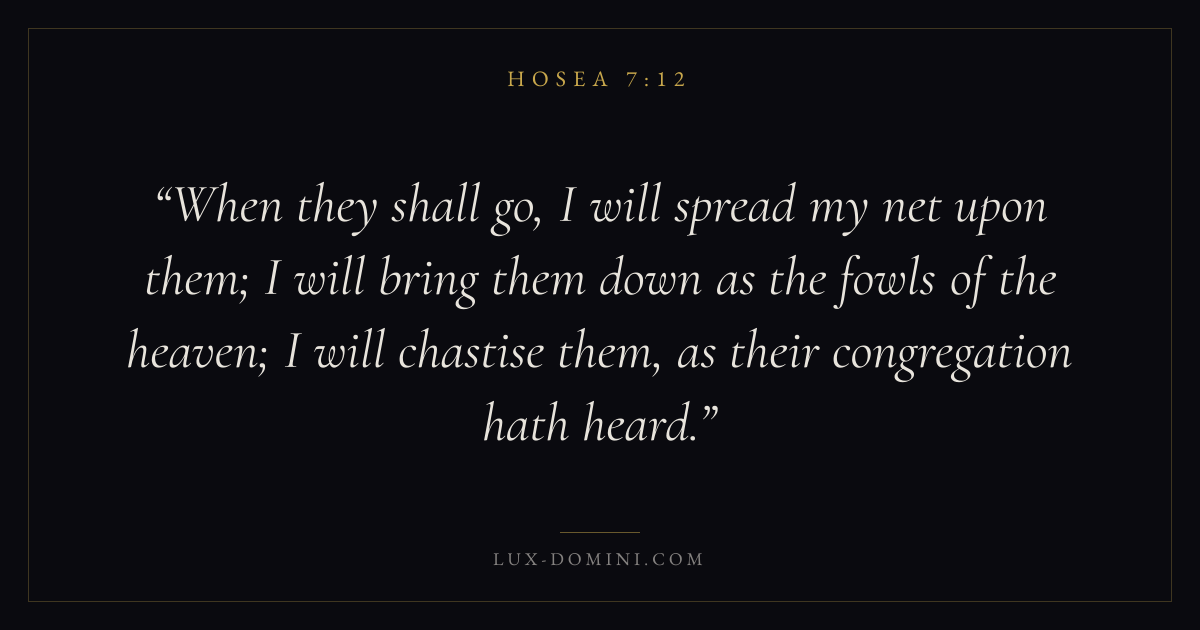 When they shall go, I will spread my net upon them; I will bring them down as the fowls of the heaven; I will chastise them, as their congregation hath heard.