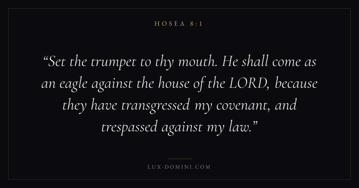 Set the trumpet to thy mouth. He shall come as an eagle against the house of the LORD, because they have transgressed my covenant, and trespassed against my law.