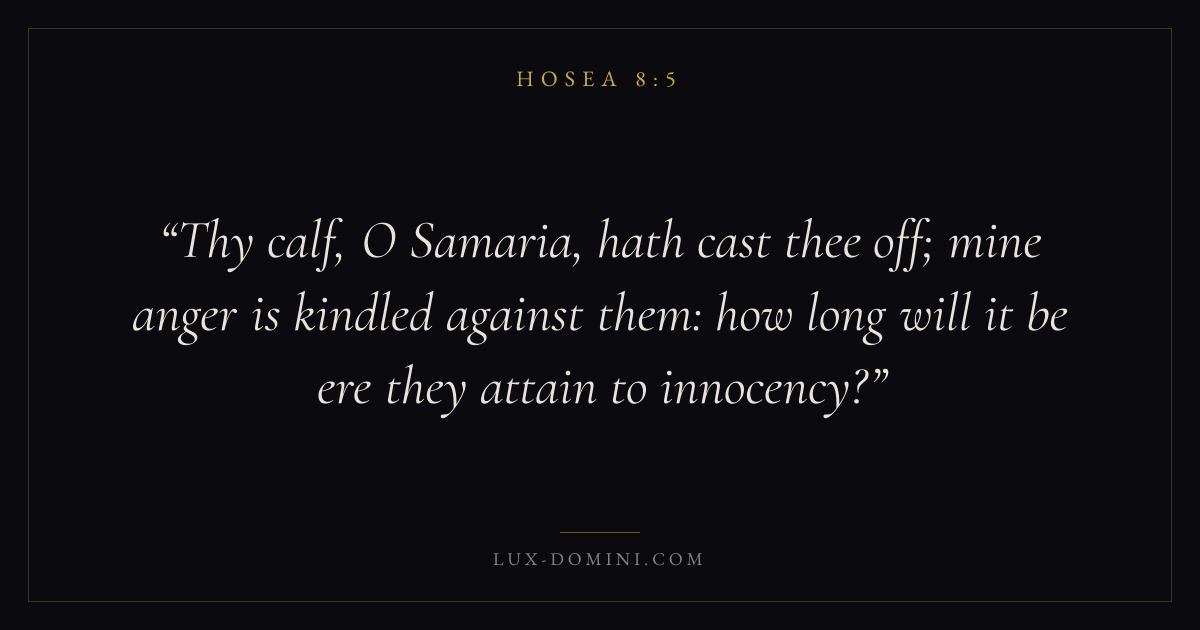 Thy calf, O Samaria, hath cast thee off; mine anger is kindled against them: how long will it be ere they attain to innocency?