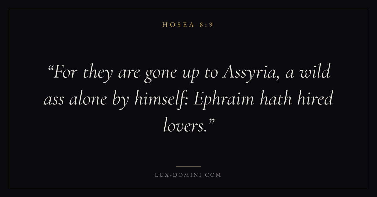 For they are gone up to Assyria, a wild ass alone by himself: Ephraim hath hired lovers.
