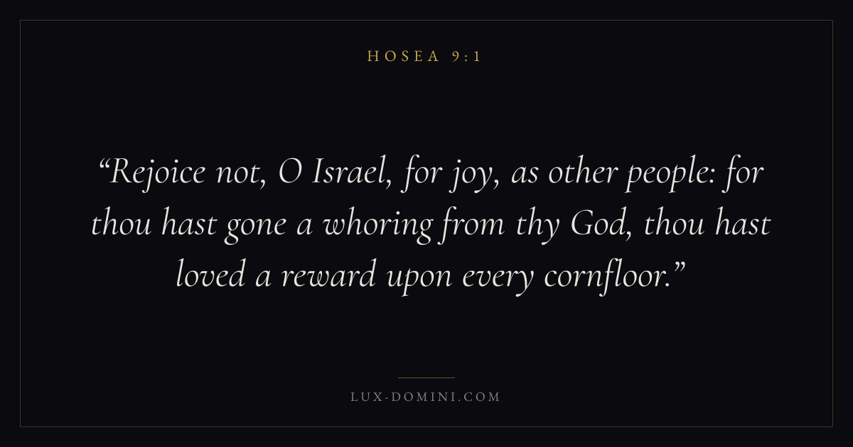 Rejoice not, O Israel, for joy, as other people: for thou hast gone a whoring from thy God, thou hast loved a reward upon every cornfloor.