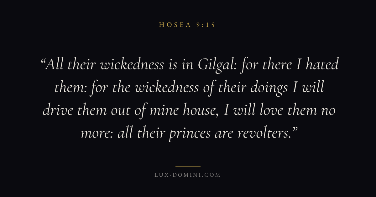 All their wickedness is in Gilgal: for there I hated them: for the wickedness of their doings I will drive them out of mine house, I will love them no more: all their princes are revolters.