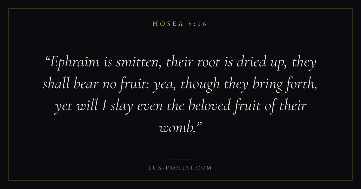 Ephraim is smitten, their root is dried up, they shall bear no fruit: yea, though they bring forth, yet will I slay even the beloved fruit of their womb.