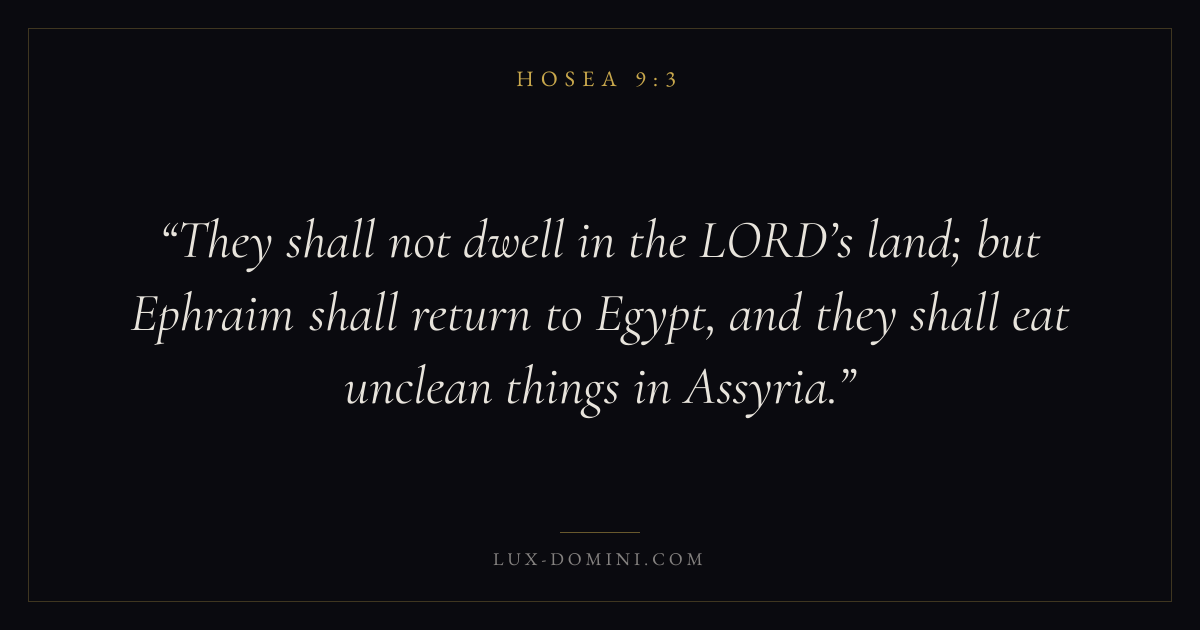 They shall not dwell in the LORD’s land; but Ephraim shall return to Egypt, and they shall eat unclean things in Assyria.