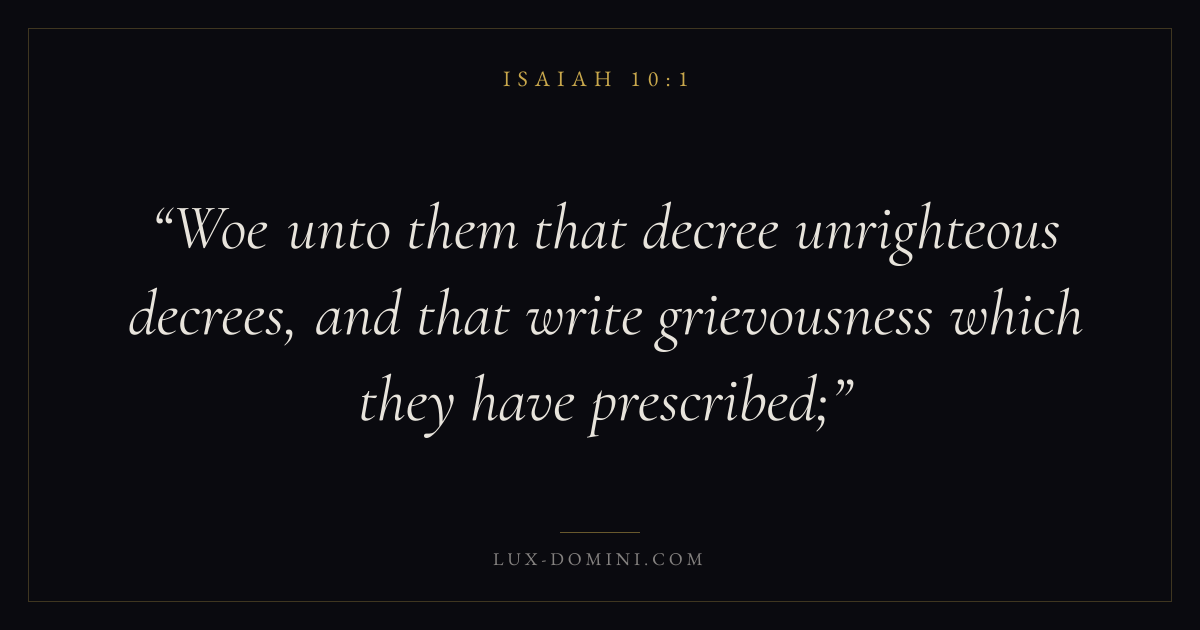 Woe unto them that decree unrighteous decrees, and that write grievousness which they have prescribed;
