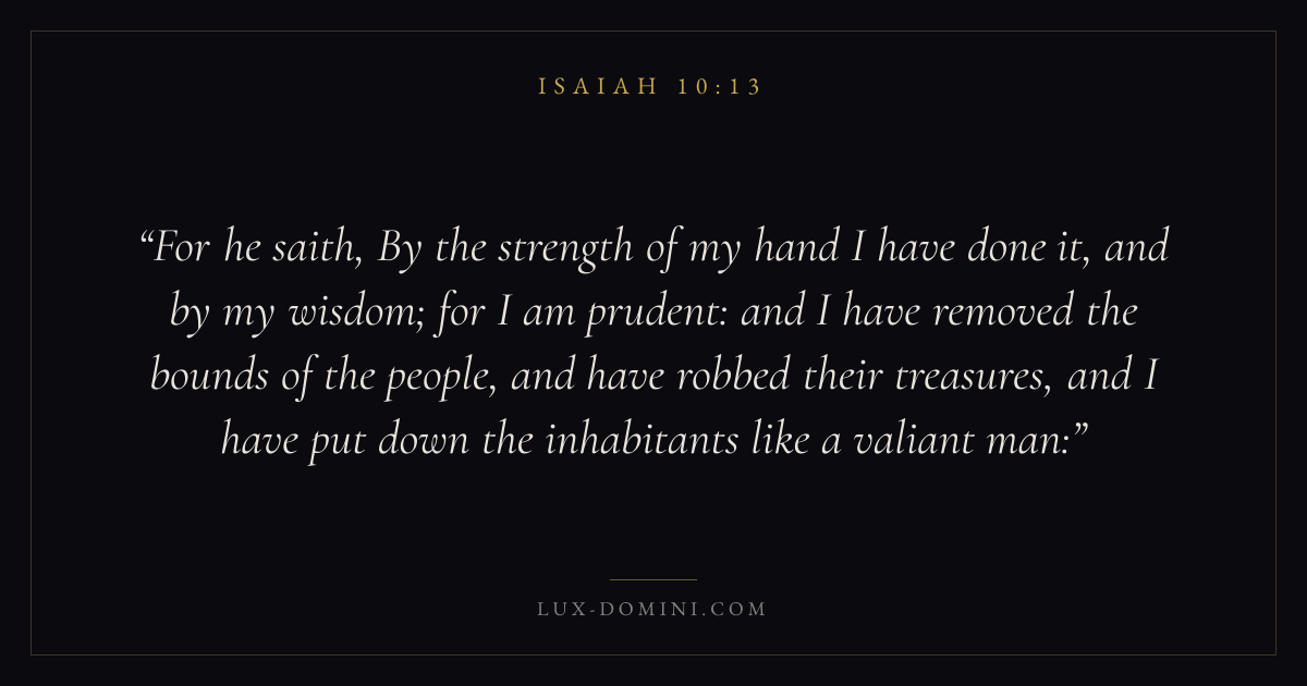 For he saith, By the strength of my hand I have done it, and by my wisdom; for I am prudent: and I have removed the bounds of the people, and have robbed their treasures, and I have put down the inhabitants like a valiant man: