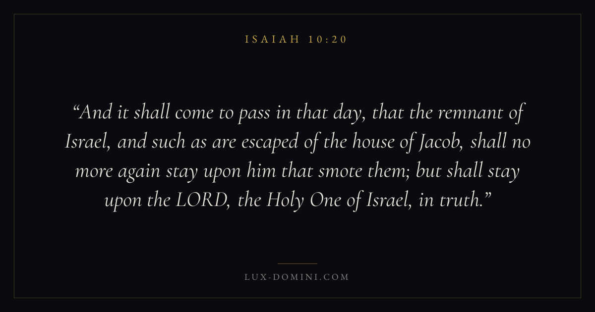 And it shall come to pass in that day, that the remnant of Israel, and such as are escaped of the house of Jacob, shall no more again stay upon him that smote them; but shall stay upon the LORD, the Holy One of Israel, in truth.