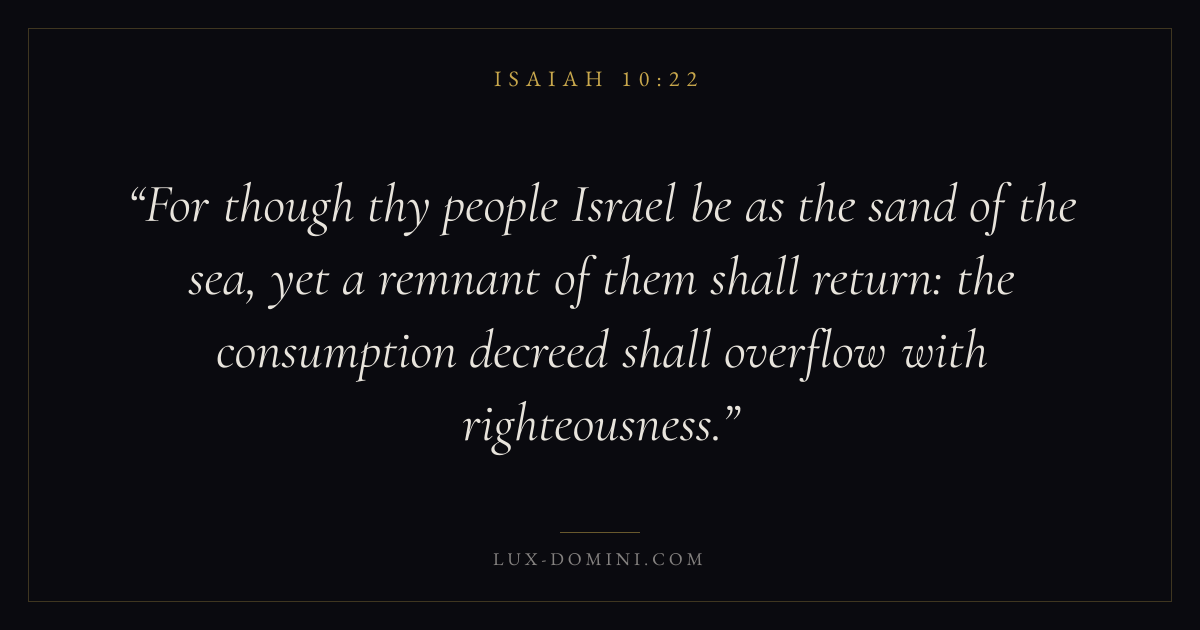 For though thy people Israel be as the sand of the sea, yet a remnant of them shall return: the consumption decreed shall overflow with righteousness.