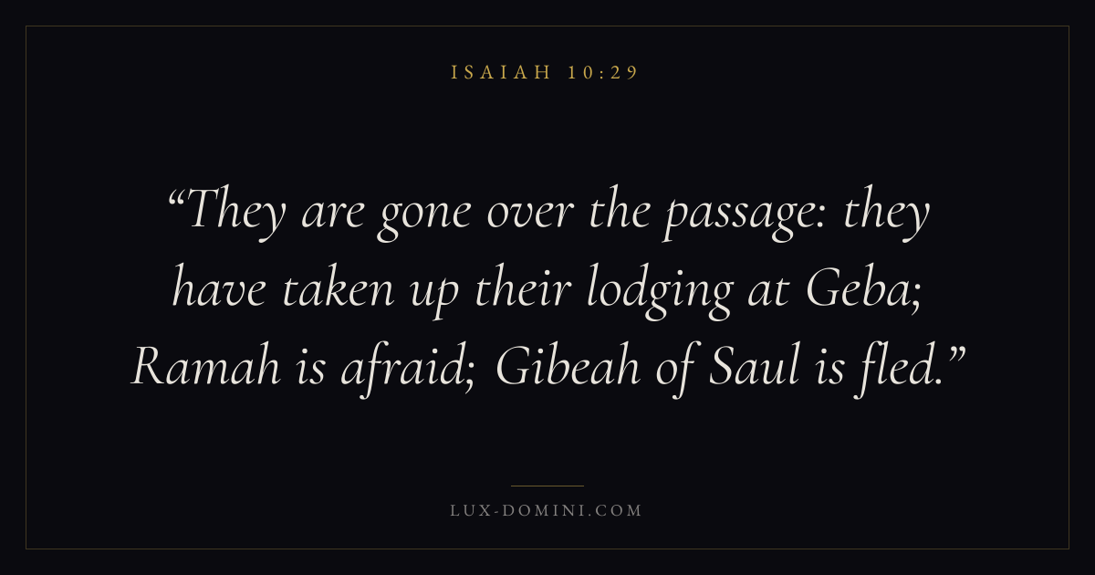 They are gone over the passage: they have taken up their lodging at Geba; Ramah is afraid; Gibeah of Saul is fled.