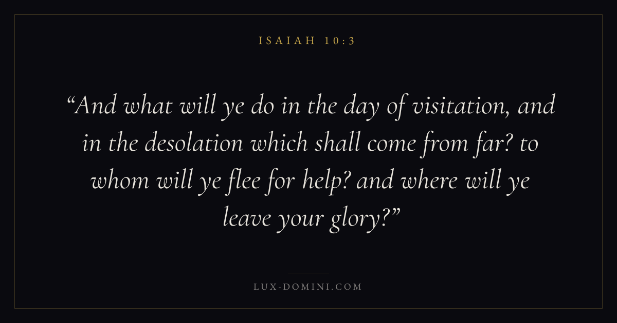 And what will ye do in the day of visitation, and in the desolation which shall come from far? to whom will ye flee for help? and where will ye leave your glory?