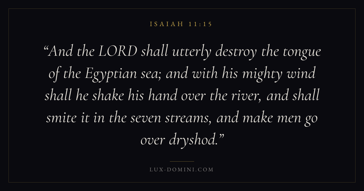 And the LORD shall utterly destroy the tongue of the Egyptian sea; and with his mighty wind shall he shake his hand over the river, and shall smite it in the seven streams, and make men go over dryshod.