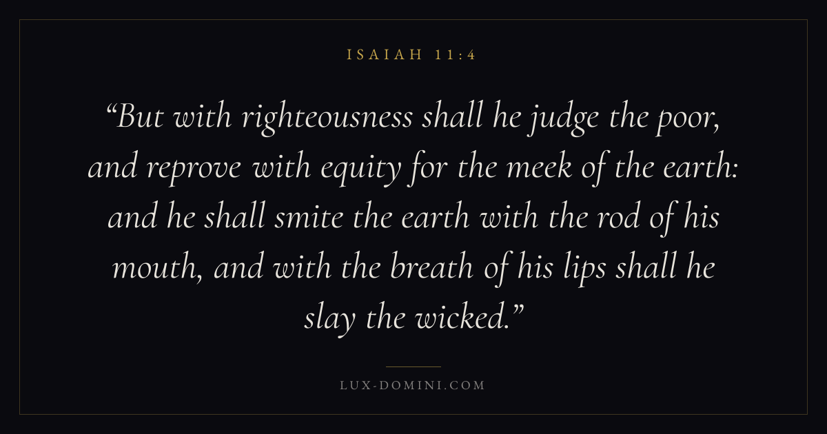 But with righteousness shall he judge the poor, and reprove with equity for the meek of the earth: and he shall smite the earth with the rod of his mouth, and with the breath of his lips shall he slay the wicked.
