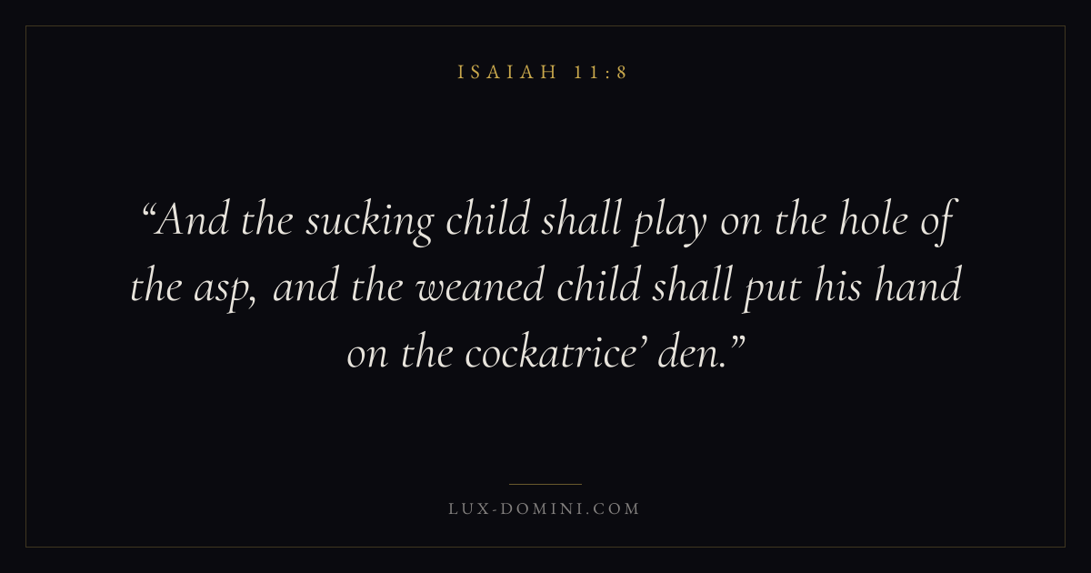 And the sucking child shall play on the hole of the asp, and the weaned child shall put his hand on the cockatrice’ den.