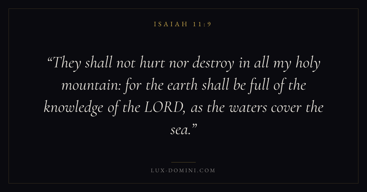 They shall not hurt nor destroy in all my holy mountain: for the earth shall be full of the knowledge of the LORD, as the waters cover the sea.
