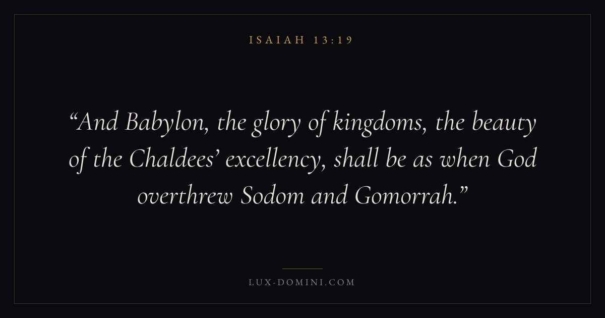 And Babylon, the glory of kingdoms, the beauty of the Chaldees’ excellency, shall be as when God overthrew Sodom and Gomorrah.