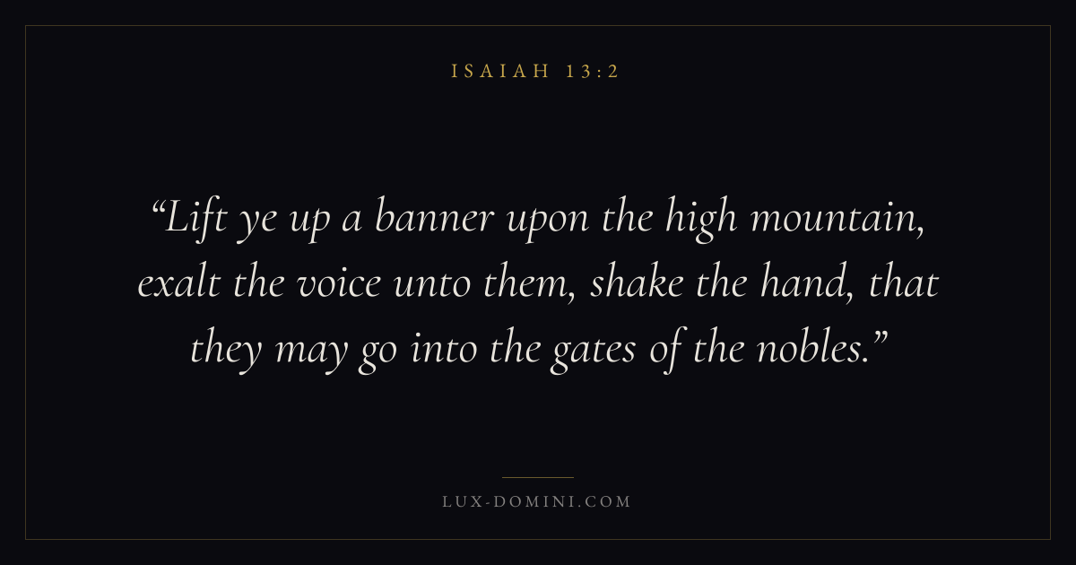Lift ye up a banner upon the high mountain, exalt the voice unto them, shake the hand, that they may go into the gates of the nobles.