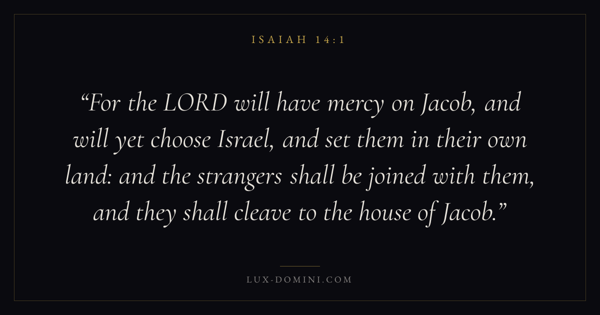 For the LORD will have mercy on Jacob, and will yet choose Israel, and set them in their own land: and the strangers shall be joined with them, and they shall cleave to the house of Jacob.