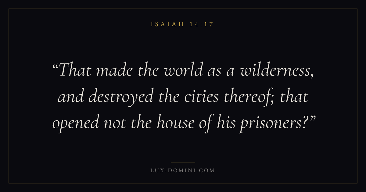 That made the world as a wilderness, and destroyed the cities thereof; that opened not the house of his prisoners?