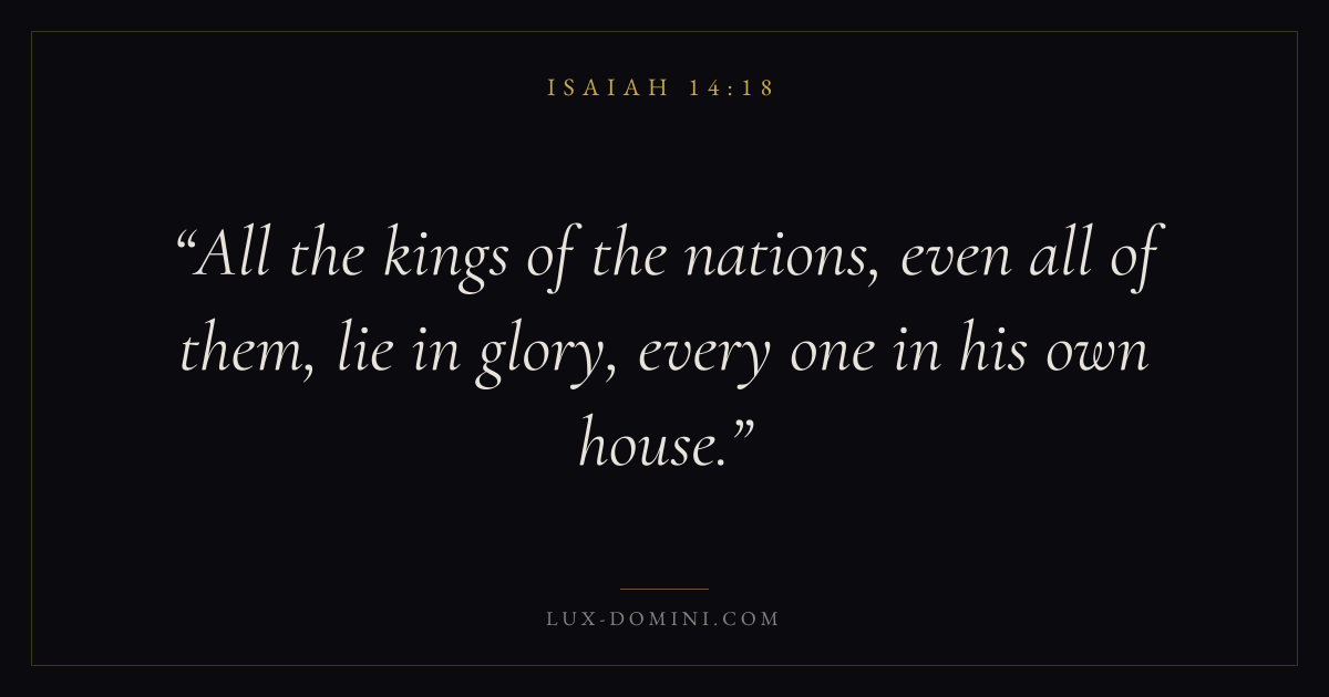 All the kings of the nations, even all of them, lie in glory, every one in his own house.