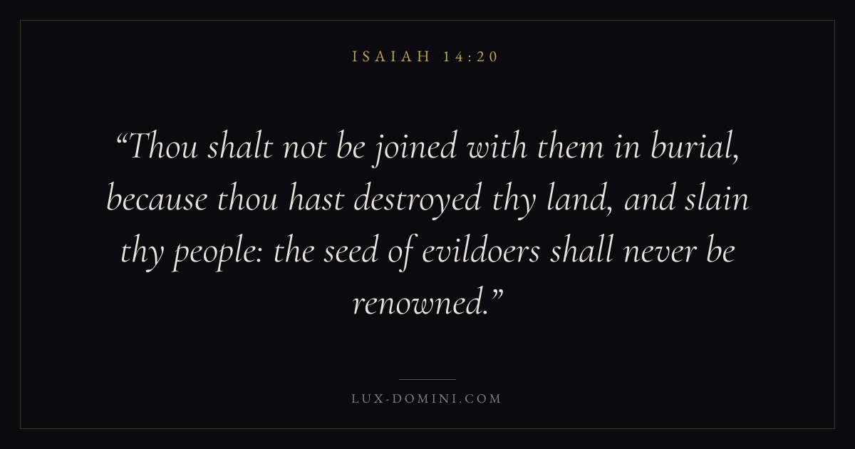 Thou shalt not be joined with them in burial, because thou hast destroyed thy land, and slain thy people: the seed of evildoers shall never be renowned.
