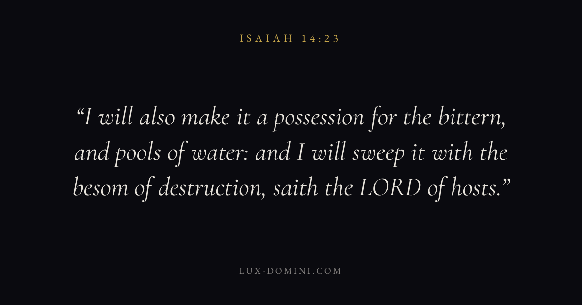 I will also make it a possession for the bittern, and pools of water: and I will sweep it with the besom of destruction, saith the LORD of hosts.