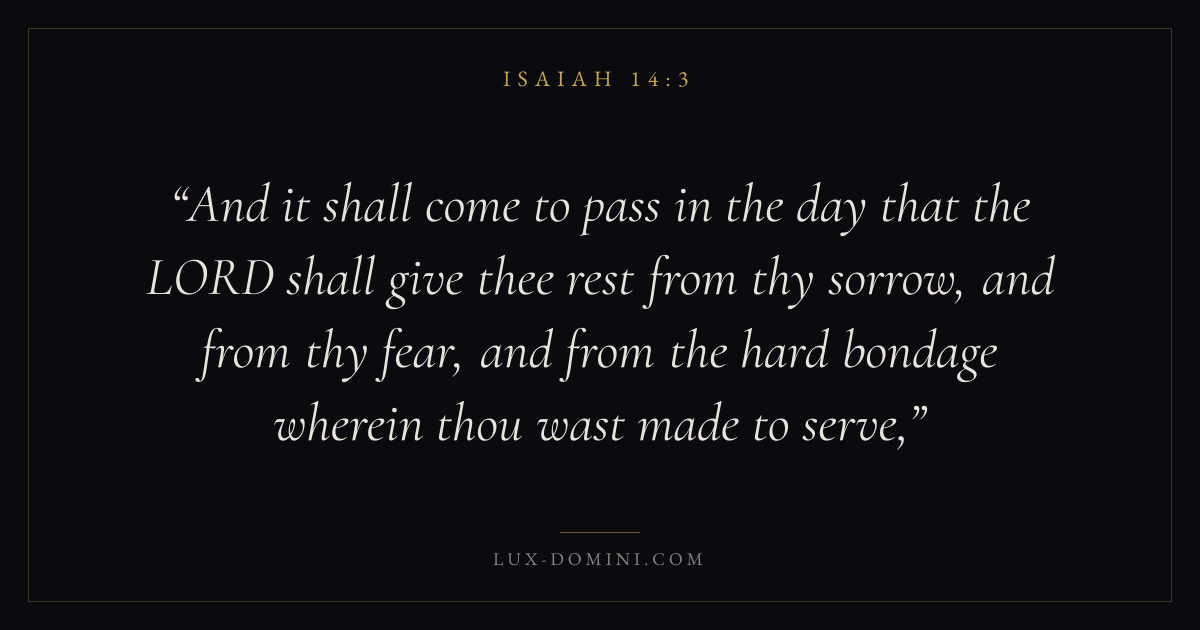 And it shall come to pass in the day that the LORD shall give thee rest from thy sorrow, and from thy fear, and from the hard bondage wherein thou wast made to serve,