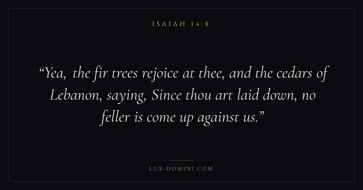Yea, the fir trees rejoice at thee, and the cedars of Lebanon, saying, Since thou art laid down, no feller is come up against us.