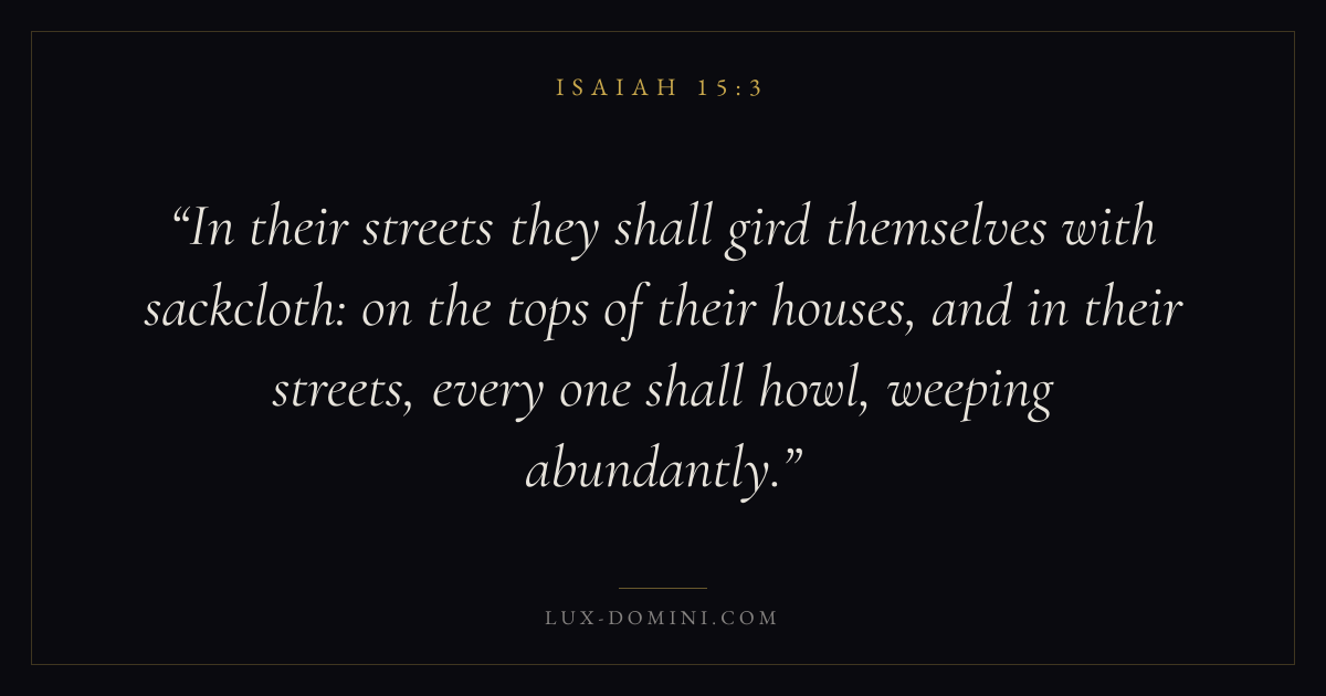 In their streets they shall gird themselves with sackcloth: on the tops of their houses, and in their streets, every one shall howl, weeping abundantly.
