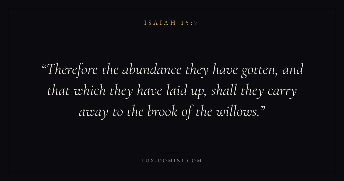 Therefore the abundance they have gotten, and that which they have laid up, shall they carry away to the brook of the willows.